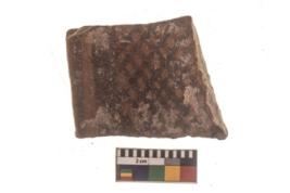 | Description / विवरण | Specimen of potter tool with black decorative geometric Net Pattern painting . |