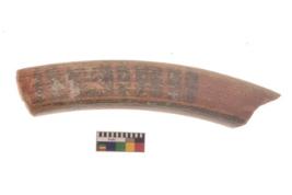 | Description / विवरण | Specimen of black on red ware with black decorative Vertical lines geometric painting. |