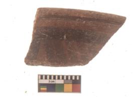 | Description / विवरण | Specimen of Potsherd with black decorative linear painting . |