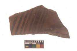 | Description / विवरण | Specimen of Potsherd with black decorative linear painting . |