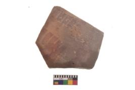 | Description / विवरण | Specimen of black on red ware with black decorative Group of horizontal lines with gap in between geometric painting. |
