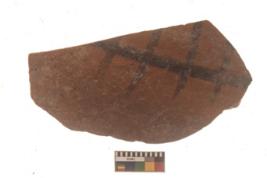 | Description / विवरण | Specimen of Potsherd black on red painted pottery. It is fine fabric in sharp contrast with painted design are executed in black pigment. |