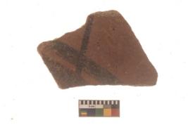 | Description / विवरण | Specimen of Potsherd black on red painted pottery. It is fine fabric in sharp contrast with painted design are executed in black pigment. |