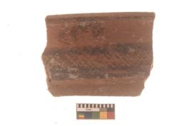 | Description / विवरण | Specimen of Potsherd black on red painted pottery. It is fine fabric in sharp contrast with painted design are executed in black pigment. |