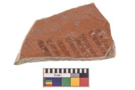 | Description / विवरण | Specimen of black on red ware with black decorative Diagonal vertical lines geometric painting. |
