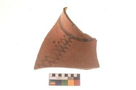 | Description / विवरण | Specimen of a Potsherd with black decorative geometric painting on it.It is set of two zigzag bands. |