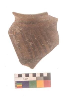 | Description / विवरण | Specimen of Potsherd with black decorative linear painting . |