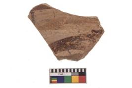 | Description / विवरण | Specimen of black on red ware with black decorative Curved lines geometric painting. |