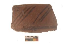 | Description / विवरण | Specimen of Potsherd with black decorative linear painting . |