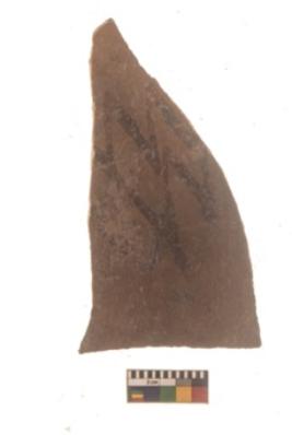 | Description / विवरण | Specimen of a Potsherd with black decorative geometric painting on it.It is set of two zigzag bands. |