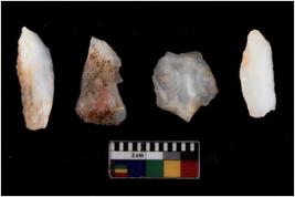 | Description / विवरण | Four utilised worked cores with sharp edges. Flakes have been removed from few sides. |