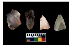 | Description / विवरण | There are n 4 flake cores. All of them are fully fluted flake cores without any trace of crested ridge flakes. Three have chalcedony, and one has chert, Most of them have sharp edges whereas few have blunted edges. |