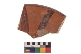 | Description / विवरण | Specimen of black on red ware with black decorative Curved lines geometric painting. |