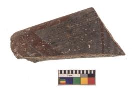| Description / विवरण | Specimen of black on red ware with black decorative Diagonal lines forming a triangle geometric painting. |