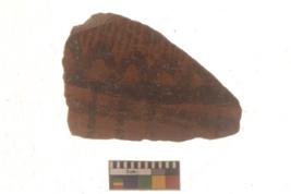| Description / विवरण | Specimen of Potsherd black on red painted pottery. It is fine fabric in sharp contrast with painted design are executed in black pigment. |