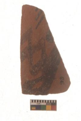 | Description / विवरण | Specimen of a Potsherd with black decorative geometric painting on it.It is set of two zigzag bands. |
