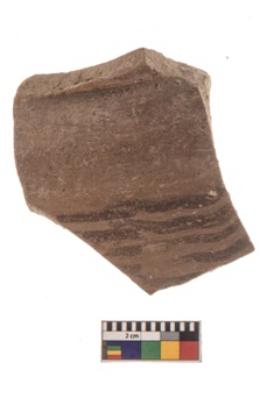 | Description / विवरण | Specimen of black on red ware with black decorative Wavy lines geometric painting. |