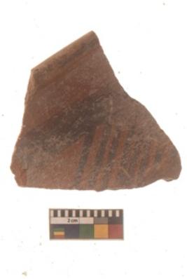 | Description / विवरण | Specimen of Potsherd with black decorative linear painting . |