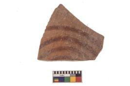 | Description / विवरण | Specimen of black on red ware with black decorative Concentric circles geometric painting. |