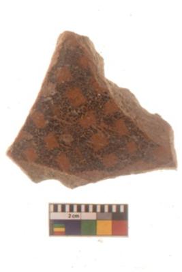 | Description / विवरण | Specimen of potsherd with black decorative geometric Net Pattern painting . |