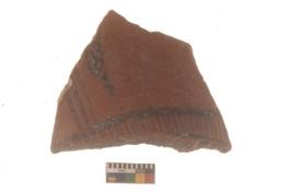 | Description / विवरण | Specimen of Potsherd black on red painted pottery. It is fine fabric in sharp contrast with painted design are executed in black pigment. |