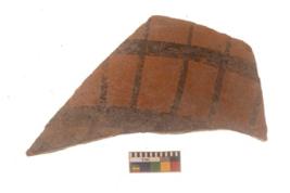 | Description / विवरण | Specimen of Potsherd black on red painted pottery. It is fine fabric in sharp contrast with painted design are executed in black pigment. |