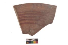 | Description / विवरण | Specimen of black on red ware with black decorative Comcentric lines geometric painting. |