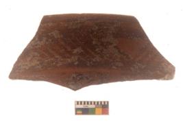 | Description / विवरण | Specimen of Potsherd with black decorative linear painting . |