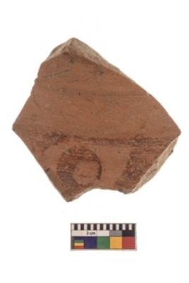 | Description / विवरण | Specimen of black on red ware with black decorative Band of horizontal lines with a circle in between geometric painting. |