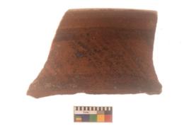 | Description / विवरण | Specimen of Potsherd with black decorative linear painting . |