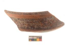 | Description / विवरण | Specimen of potsherd with black decorative geometric Net Pattern painting . |