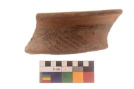 | Description / विवरण | Specimen of Potsherd with black decorative linear painting . |