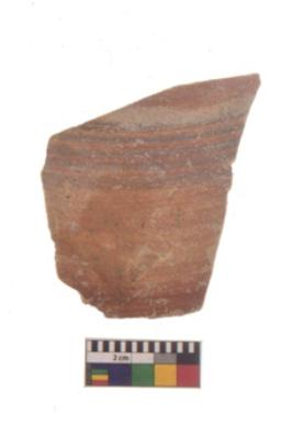 | Description / विवरण | Specimen of black on red ware with black decorative Concentric lines geometric painting. |