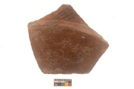 | Description / विवरण | Specimen of Potsherd black on red painted pottery. It is fine fabric in sharp contrast with painted design are executed in black pigment. |