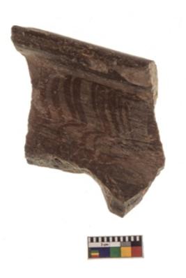 | Description / विवरण | Specimen of black on red ware with black decorative Vertical wavy lines geometric painting. |