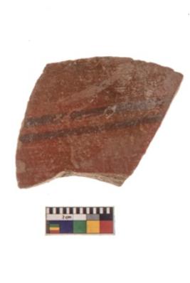 | Description / विवरण | Specimen of black on red ware with black decorative Horizontal lines geometric painting. |