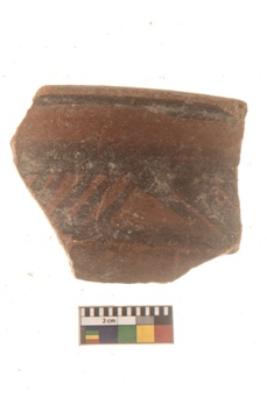 | Description / विवरण | Specimen of Potsherd with black decorative linear painting . |
