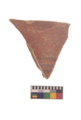 | Description / विवरण | Specimen of black on red ware with black decorative Horizontal lines geometric painting. |