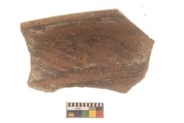 | Description / विवरण | Specimen of Potsherd with black decorative linear painting . |