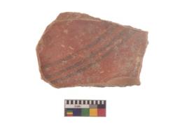 | Description / विवरण | Specimen of black on red ware with black decorative Concentric lines geometric painting. |
