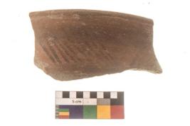 | Description / विवरण | Specimen of Potsherd with black decorative linear painting . |