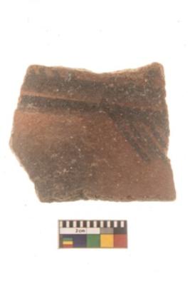 | Description / विवरण | Specimen of Potsherd black on red painted pottery. It is fine fabric in sharp contrast with painted design are executed in black pigment. |