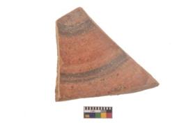 | Description / विवरण | Specimen of black on red ware with black decorative Horizontal lines geometric painting. |