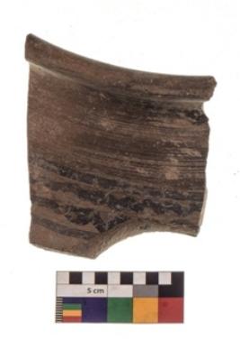 | Description / विवरण | Specimen of black on red ware with black decorative Horizontal lines geometric painting. |