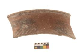 | Description / विवरण | Specimen of a Potsherd with black decorative geometric painting on it.It is set of two zigzag bands. |