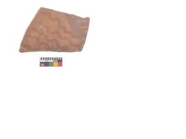 | Description / विवरण | Specimen of black on red ware with red decorative Wavy lines with vertical lines at the right seperated with a band of vertical line geometric painting. |