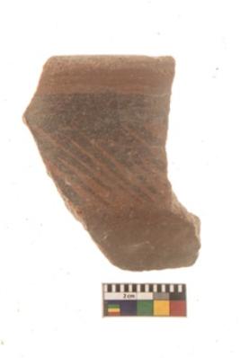 | Description / विवरण | Specimen of Potsherd with black decorative linear painting . |