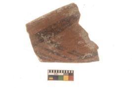 | Description / विवरण | Specimen of Potsherd with black decorative linear painting . |