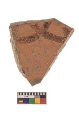 | Description / विवरण | Specimen of black on red ware with black decorative Intersecting triangles geometric painting. |