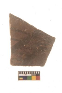 | Description / विवरण | Specimen of Potsherd black on red painted pottery. It is fine fabric in sharp contrast with painted design are executed in black pigment. |
